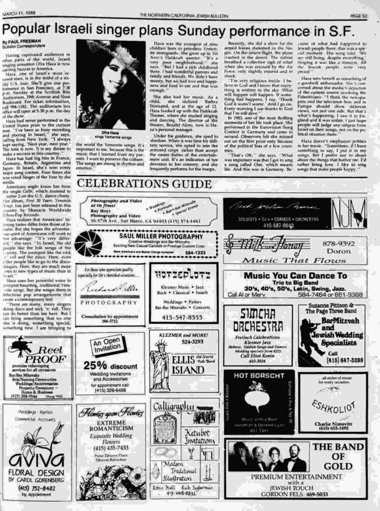 Popular Israeli singer plans Sunday performance in S.F - The Northern California Jewish Bulletin - 11.03.1988